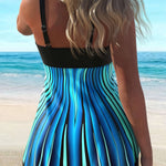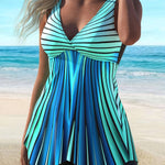 Detalii Stil: Set de tankini cu fustă în dungi care acoperă abdomenul | Partea de sus: siluetă evazată cu decolteu în V | Partea de jos: Costum de baie negru | Culoare: Turcoaz & dungă albastră