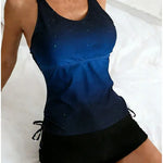 DetaliiStil: Set de tankini cu imprimeu de galaxii care acoperă burtica | Partea de sus: spate încrucișat cu șnur lateral, cupe moi detașabile, control al burticii | Partea de jos: Costum de baie negru | Culoare: galaxie violetă/galaxie albastră/galaxie lavandă.