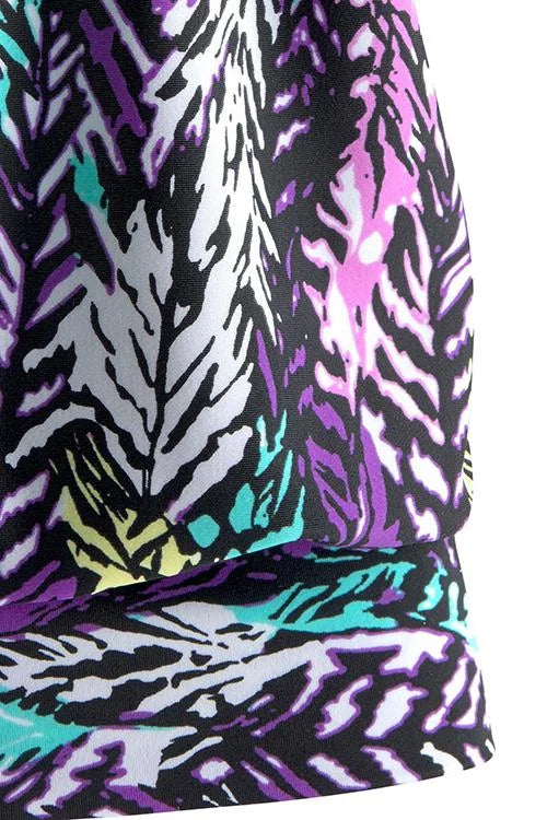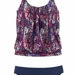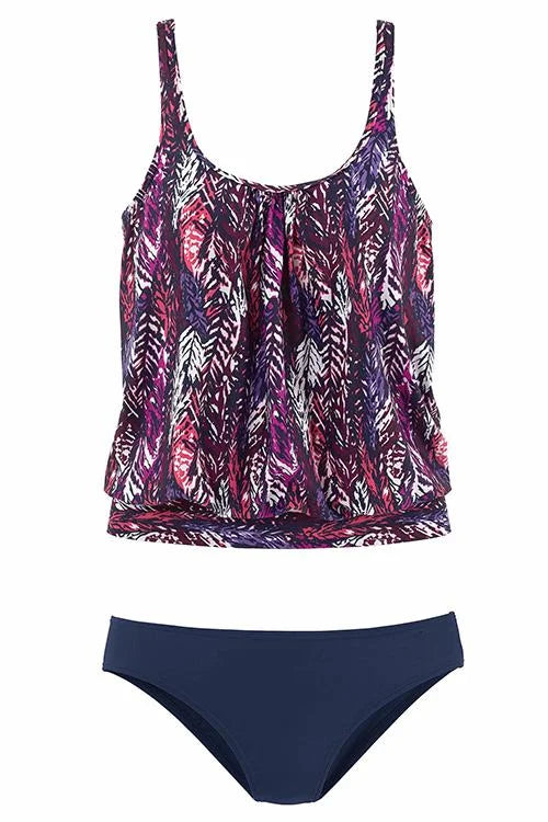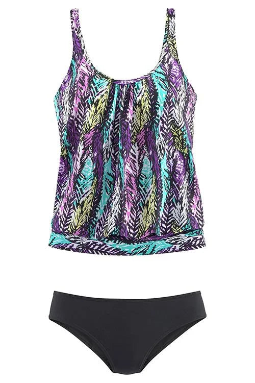 Detaliile Stil: Set de tankini cu imprimeu de pene care acoperă abdomenul | Sus: Jachetă cu decupaj plisat | Jos: Slip solid | Culoare: mov și mov. Albastru marin/verde-albăstrui multicolor și Negru