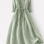Descoperă rochia care îmbină ușurința, confortul și eleganța subtilă. Rochia noastră midi din bumbac și in a fost creată pentru femeile care apreciază simplicitatea și detaliile bine gândite.