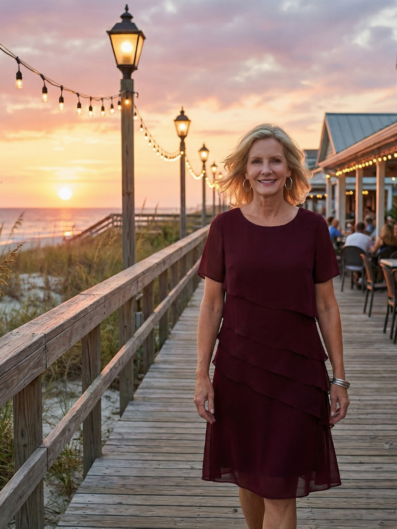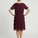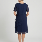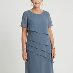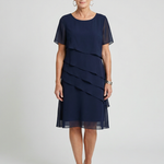 Rochie midi cu suprapuneri stratificate în față, care creează o structură fluidă în cascadă pe corp. Materialul ușor și neted se mișcă delicat la fiecare pas. Croiala lejeră oferă un aspect îngrijit, potrivită pentru evenimente zilnice.
