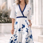 Noelle | Rochie de Primăvară Florală cu Decolteu în V