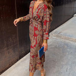 Rochia Isadora™ a fost creată pentru femeia căreia îi place să se remarce în mod natural. O piesă rafinată și feminină, caracterizată printr-un imprimeu artistic bogat, o siluetă midi fluidă și un nod delicat la talie care pune în valoare figura fără să o constrângă.