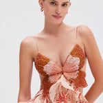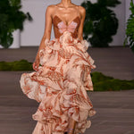 Nala este o fantezie transformată în rochie: eterică, liberă și profund feminină. Perfectă pentru celebrări la apus sau o escapadă boémă, căderea sa cu volane și decolteu bijuterie dezlănțuie o senzualitate artistică și un farmec fără efort. Purtând-o, te vei simți ușoară, captivantă, ca și cum ai pluti printre suspine și priviri.