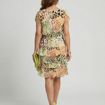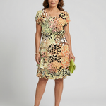 Rochie midi cu print abstract dispersat pe o siluetă ușor stratificată, cu lungime până la genunchi. Materialul ușor și confortabil asigură o cădere fină, mișcându-se natural cu corpul. Concepută pentru purtare zilnică simplă, cu o croială lejeră și confortabilă.