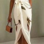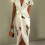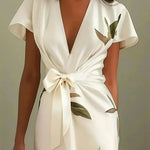 Rochia Amira | Rochie Elegantă Tip Wrap combină eleganța rafinată cu un strop de farmec inspirat din natură. Confecționată din material luxos, se așază frumos pe corp, în timp ce imprimeul delicat cu frunze adaugă un accent moale și sofisticat. Designul tip wrap cu curea de legat flatează talia, creând o siluetă grațioasă, perfectă pentru orice ocazie. Ușoară, elegantă și fără efort chic – Amira este rochia la care vei apela când vrei să faci o impresie de neuitat.