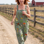 Această piesă este o salopetă fără mâneci, cu o formă relaxată și un design cu picioare largi într-un model jucăuș imprimat. Materialul este ușor și permite o mișcare liberă pe parcursul zilei. Este potrivită pentru purtat casual sau pentru timp petrecut în aer liber.