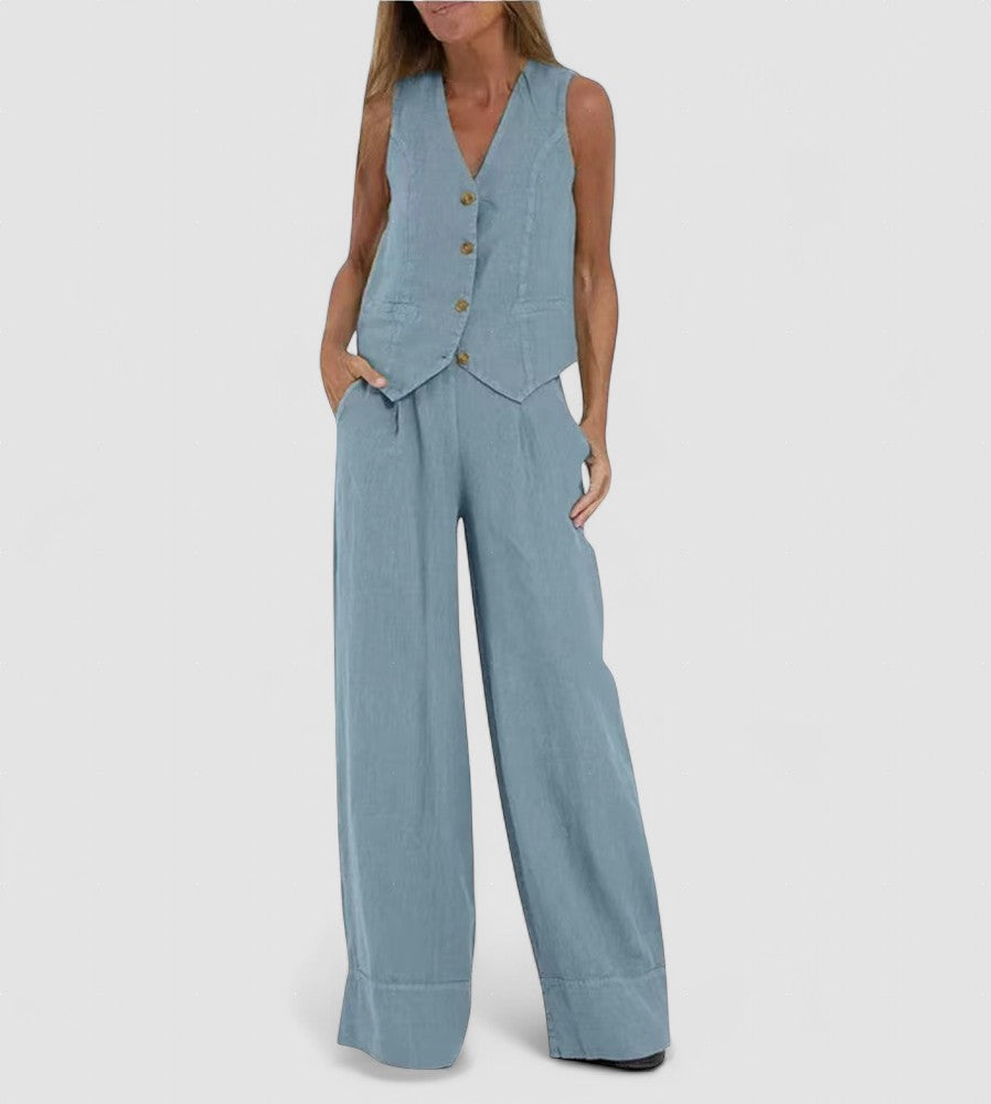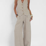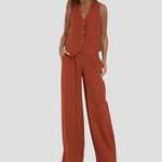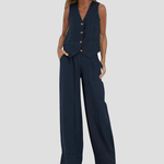 Îmbunătățește-ți Stilul cu Setul Vestă cu Nasturi și Pantaloni Largi Jessica!