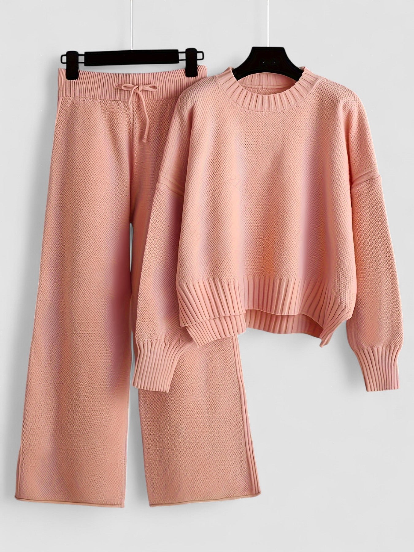 Adaugă setul Violetta Tricotat Confortabil în colecția ta pentru un ansamblu stilat și confortabil, perfect pentru orice ocazie, de la relaxarea acasă până la ieșiri casuale!
