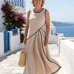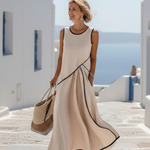 Descoperă rochia perfectă pentru zilele călduroase! Această rochie maxi se remarcă prin croiala sa fluidă și decolteul rotund, oferindu-ți un look elegant și confortabil. Designul fără mâneci îți permite să te bucuri de libertatea de mișcare, ideală pentru orice ocazie.