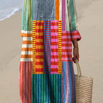 L'abito Mia Walk è una vibrante celebrazione di colori e motivi geometrici. Caratterizzato da un mix dinamico di righe e blocchi in tonalità brillanti e accattivanti, questo vestito porta un senso di divertimento e individualità al tuo look. La vestibilità rilassata e il scollo a V garantiscono comfort mentre offrono una silhouette lusinghiera, rendendolo perfetto per uscite informali o passeggiate in giornate di sole.